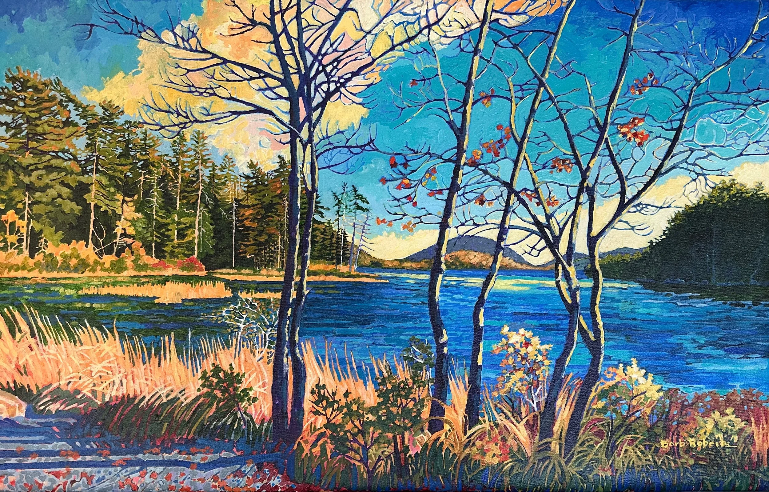 36“w x 24“h - Acrylic - A beautiful late fall evening at Eagle Lake in Acadia National Park.
